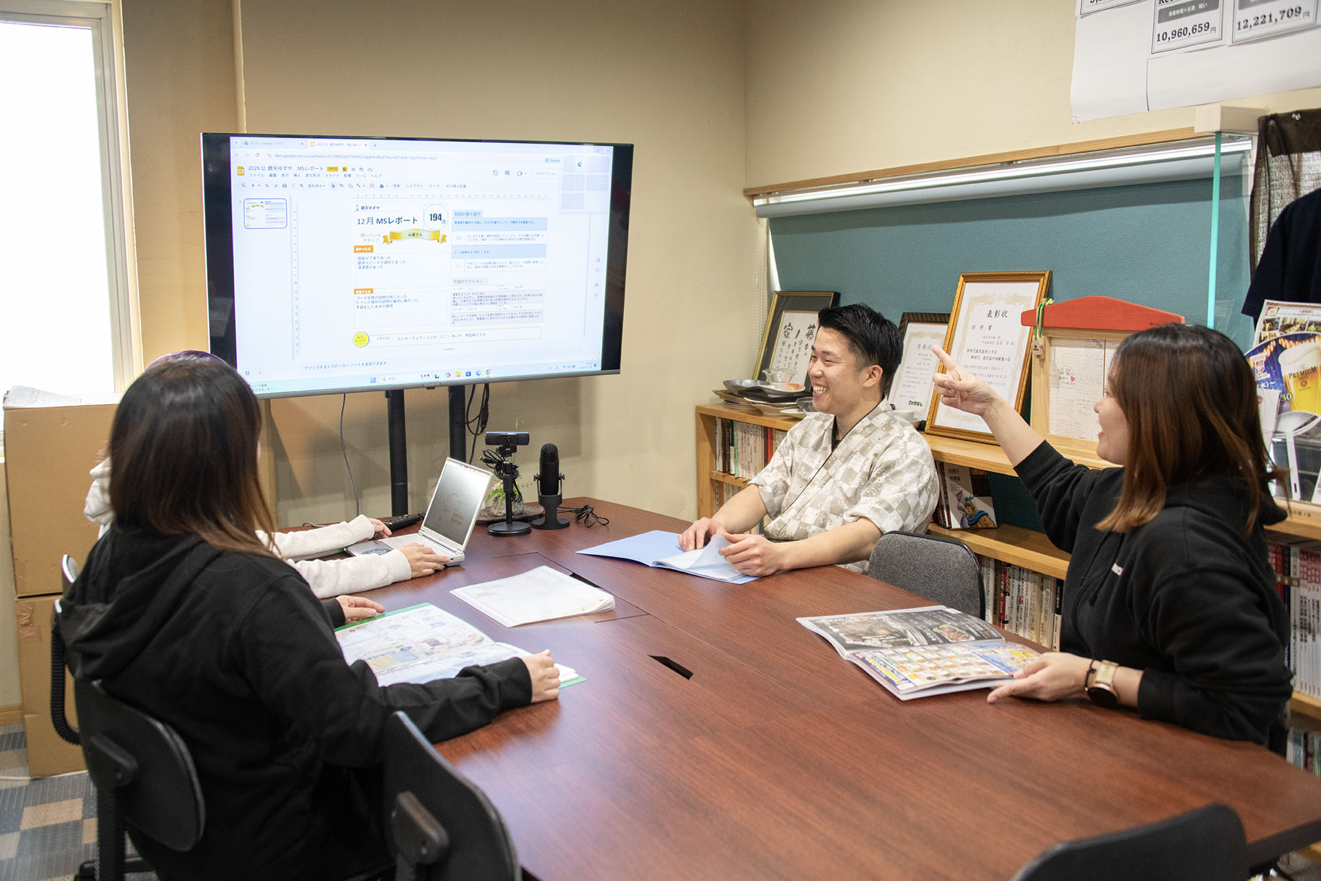経営理念「そこに笑顔はあるのか?」のもと、日々お客様、一緒に働く仲間、家族、業者さんなど関わる全ての人が「笑顔」かどうかを考えることを大事にしています。宮崎では他にはない人事評価制度や教育制度を取り入れ「宮崎で一番価値ある飲食企業へ」という経営ビジョン実現のために日々邁進しています。店舗運営についてはもちろん、働く従業員が誇れるような会社にしていくための改善・改革を行っています。