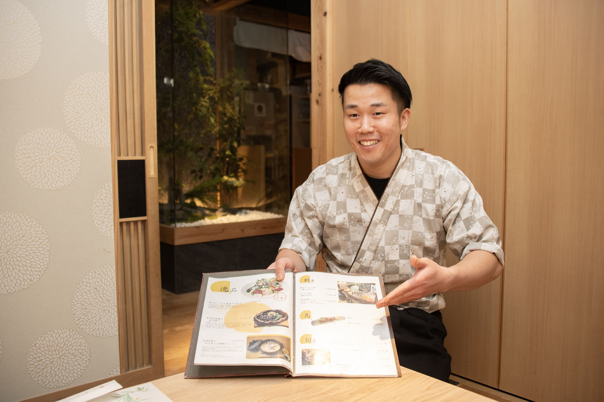 「郷土料理 銀天ゆずや」は、カウンター席も備えながら、全席個室で宮崎の郷土料理を中心とした和食を提供する店です。焼き鳥店での経験が中心だったため、和食への挑戦には不安もありましたが、和食料理を専門とする先輩スタッフから調理の基本を一から教えてもらえる環境がありました。入社から半年ほどですが、日々の姿勢や取り組みを評価していただき、現在は主任という役職を任せてもらっています。現場全体を見ながらホール・キッチン双方のサポートを行い、売上管理や会議への参加、学生アルバイトのフォロー、接客品質の底上げにも携わっています。調理だけでなく、店舗運営にも関われる点に、大きなやりがいを感じています。